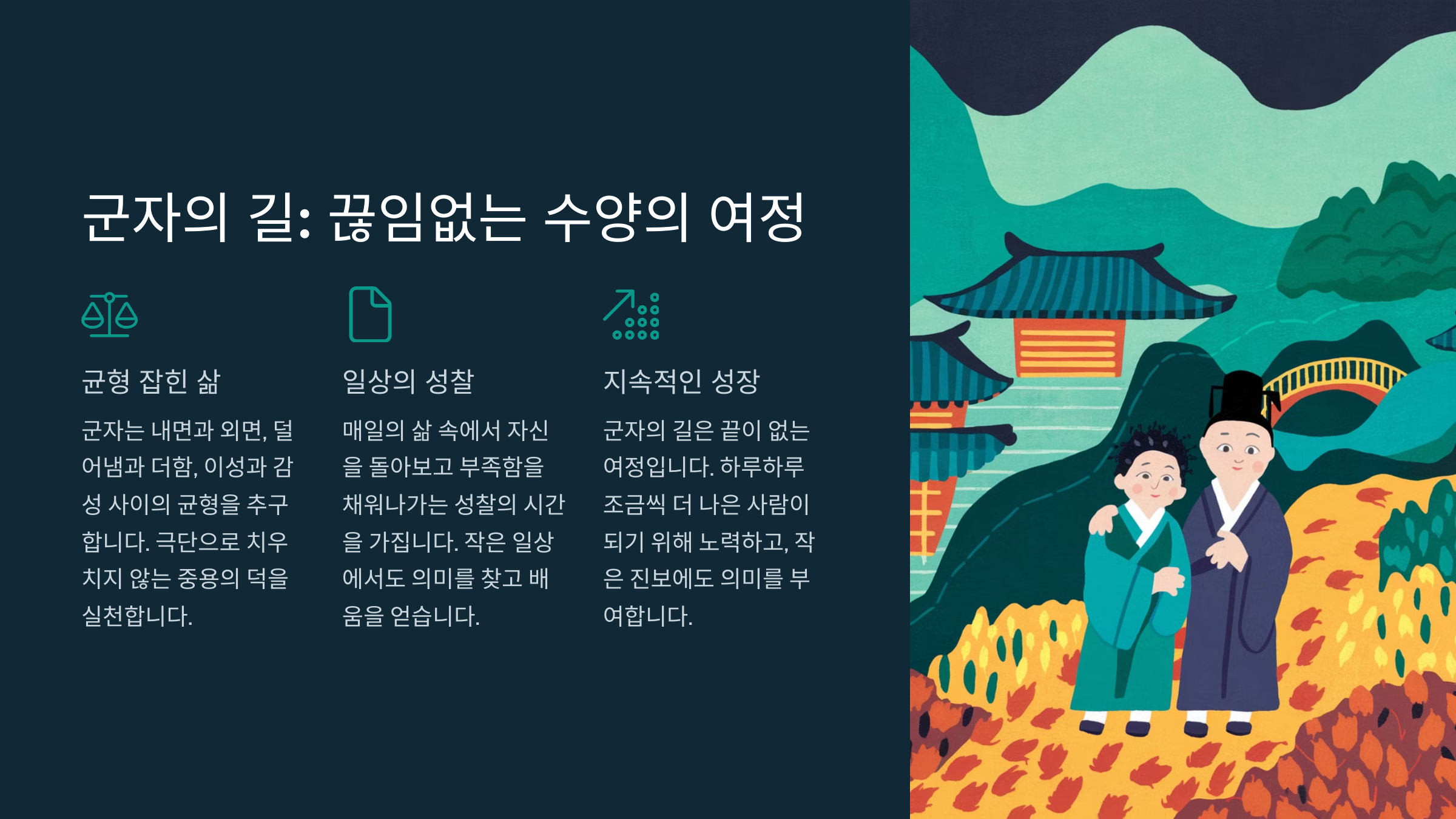 온종일 하늘을 닮아가려 노력하는 군자의 길. 분노를 다스리고 욕망을 절제하는 수양의 여정을 통해 진정한 군자의 삶을 이해하고 실천해봅시다.