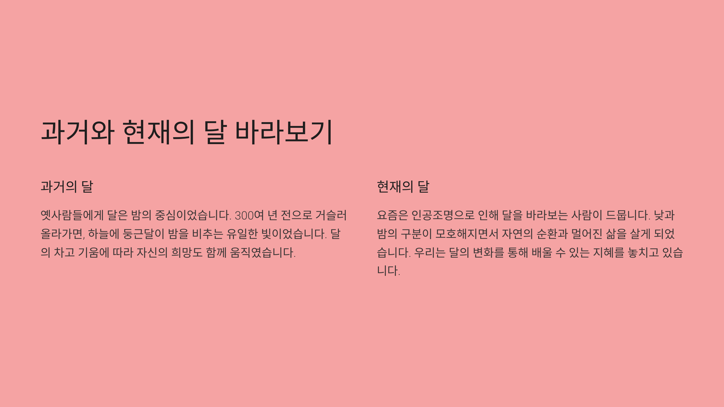 옛사람들에게 달은 밤의 중심이었습니다. 300여 년 전으로 거슬러 올라가면, 하늘에 둥근달이 밤을 비추는 유일한 빛이었습니다. 달의 차고 기움에 따라 자신의 희망도 함께 움직였습니다.
