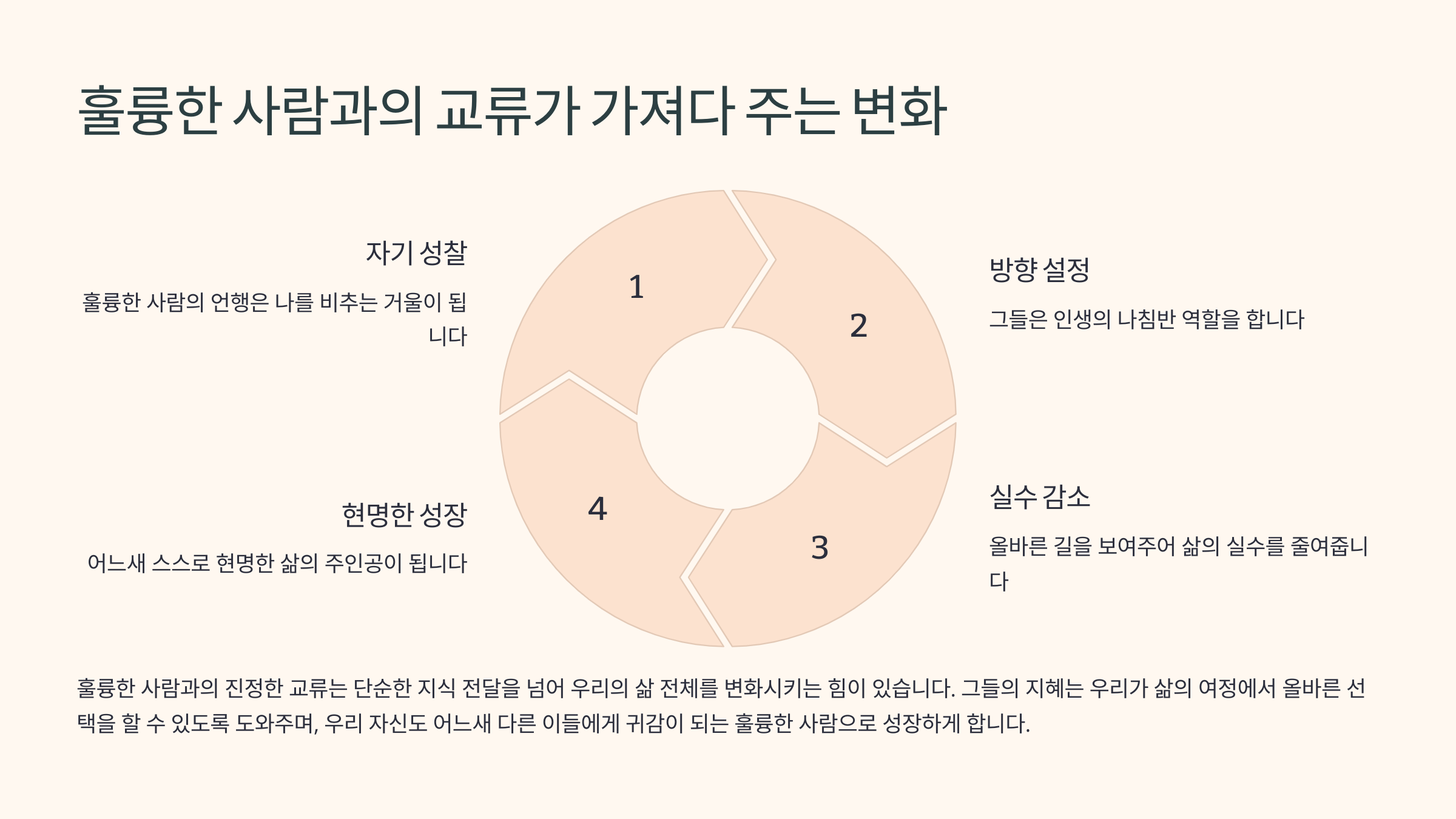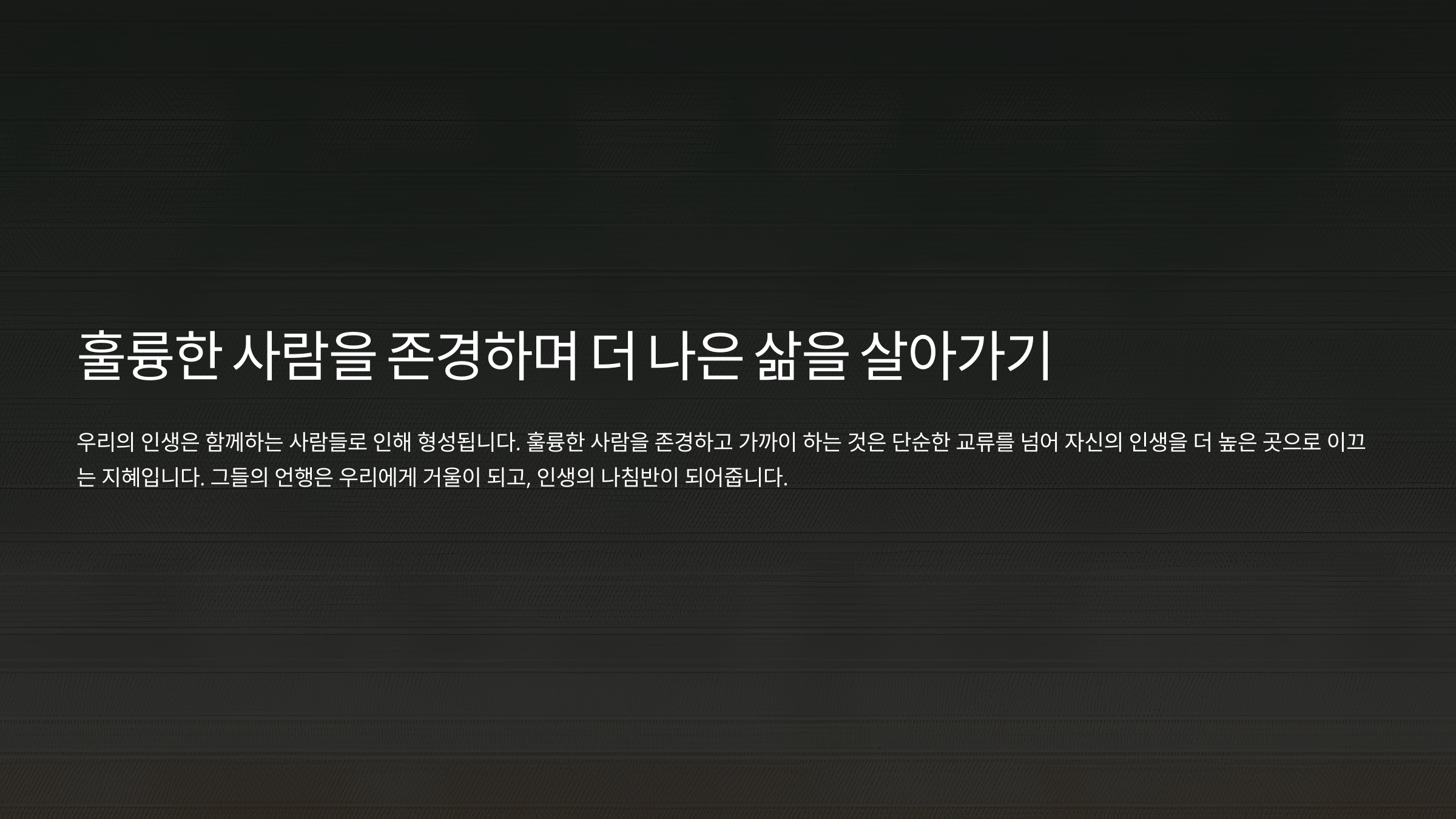 정말 훌륭한 사람을 좋아하나요? 마치 자신이 가장 좋아하는 일처럼 좋아하세요. 잠시라도 보이지 않으면 찾아보고, 잃어버릴까 아까워하며, 그 사람을 소중히 여기며 살아가세요. 어찌 대충 대하거나 멀리할 수 있겠습니까? 훌륭한 사람의 언행은 자신을 비추는 거울이 되고, 인생의 나침반이 됩니다. 그렇게 하면 삶의 실수를 줄이고, 어느새 스스로 현명한 삶의 주인공이 될 수 있을 것입니다.