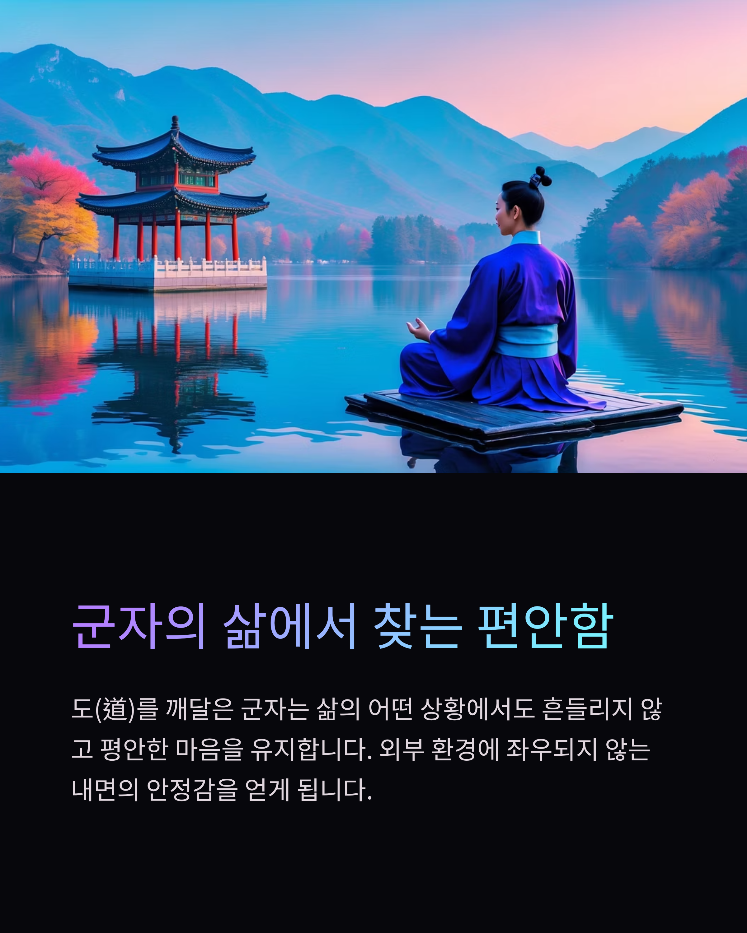 도(道)를 깨달은 군자는 삶의 어떤 상황에서도 흔들리지 않고 평안한 마음을 유지합니다.