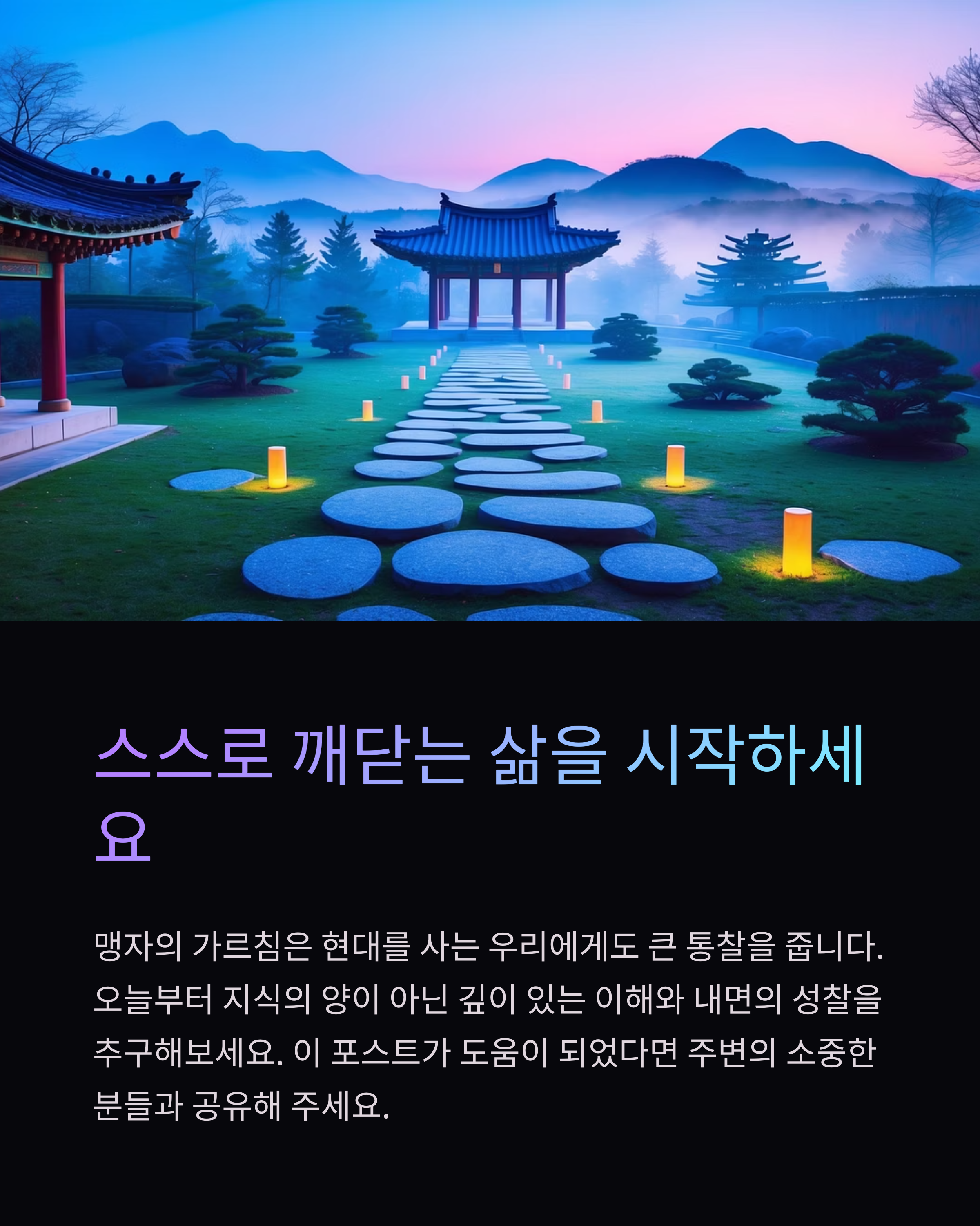 맹자의 가르침은 현대를 사는 우리에게도 큰 통찰을 줍니다. 오늘부터 지식의 양이 아닌 깊이 있는 이해와 내면의 성찰을 추구해보세요. 이 포스트가 도움이 되었다면 주변의 소중한 분들과 공유해 주세요.